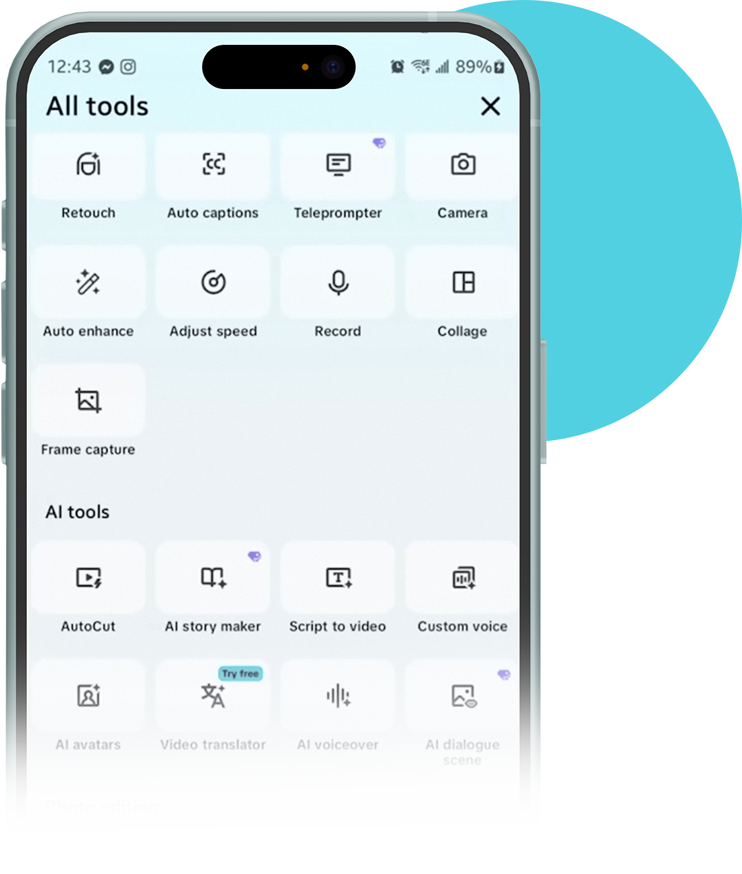 Лучшее для соцсетей! Идеально для создания контента в TikTok и Reels. Шаблоны, стикеры, субтитры автоматически — всё для быстрого и красивого видео